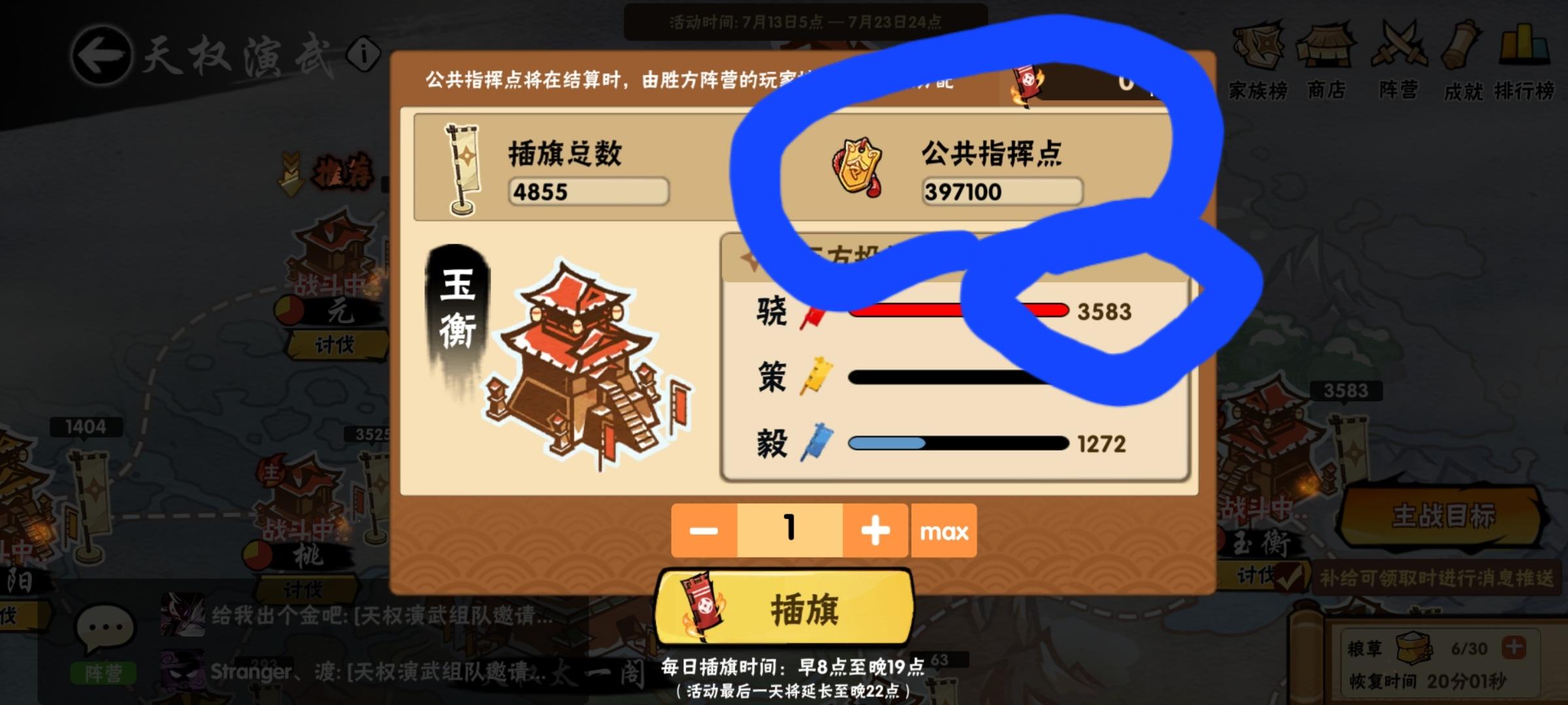 除了插旗时能马上获得插旗数×100的指挥点之外,还能在当天晚上十一点结算的时候额外获得这座城的(公共指挥点÷己方插旗数)×自己插旗数 的指挥点。