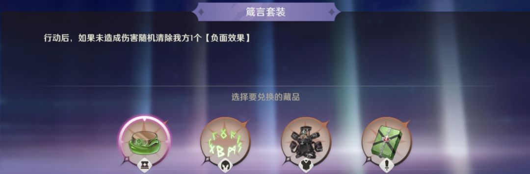其他私藏品个人推荐为【箴言】,未造成伤害可以随机清除我方的一个负面效果。对于辅助位来说是一个不错的选择,在特殊场合可以用到。