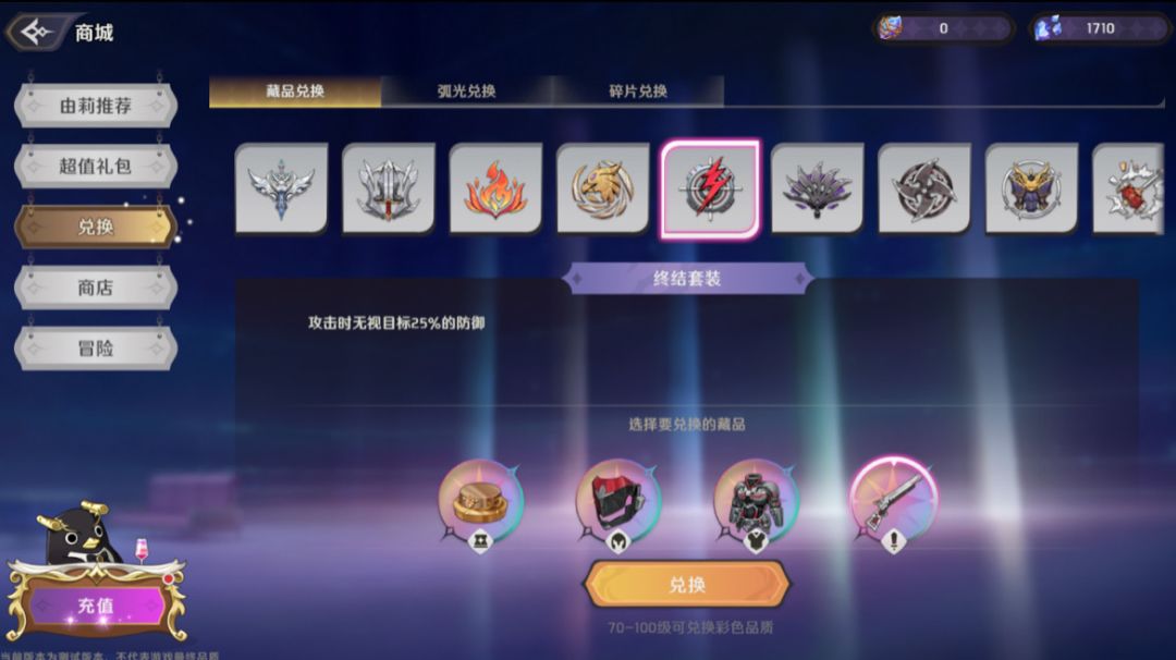 漆黑盛典第一席与【终结】套装的属性完美适配,这里强烈推荐。【终结】套装拥有15%的暴击率加成,可以让漆黑盛典第一席的暴击率直接拉满,同时还附带25%的无视防御,进一步的增加其秒杀脆皮的能力。