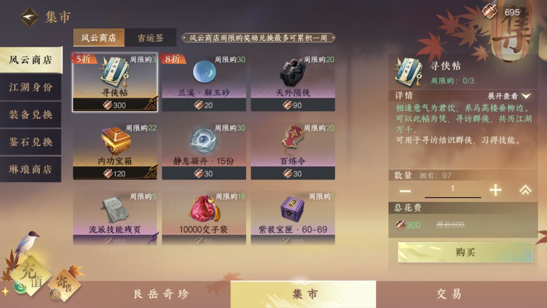 内功宝箱:4800风云令