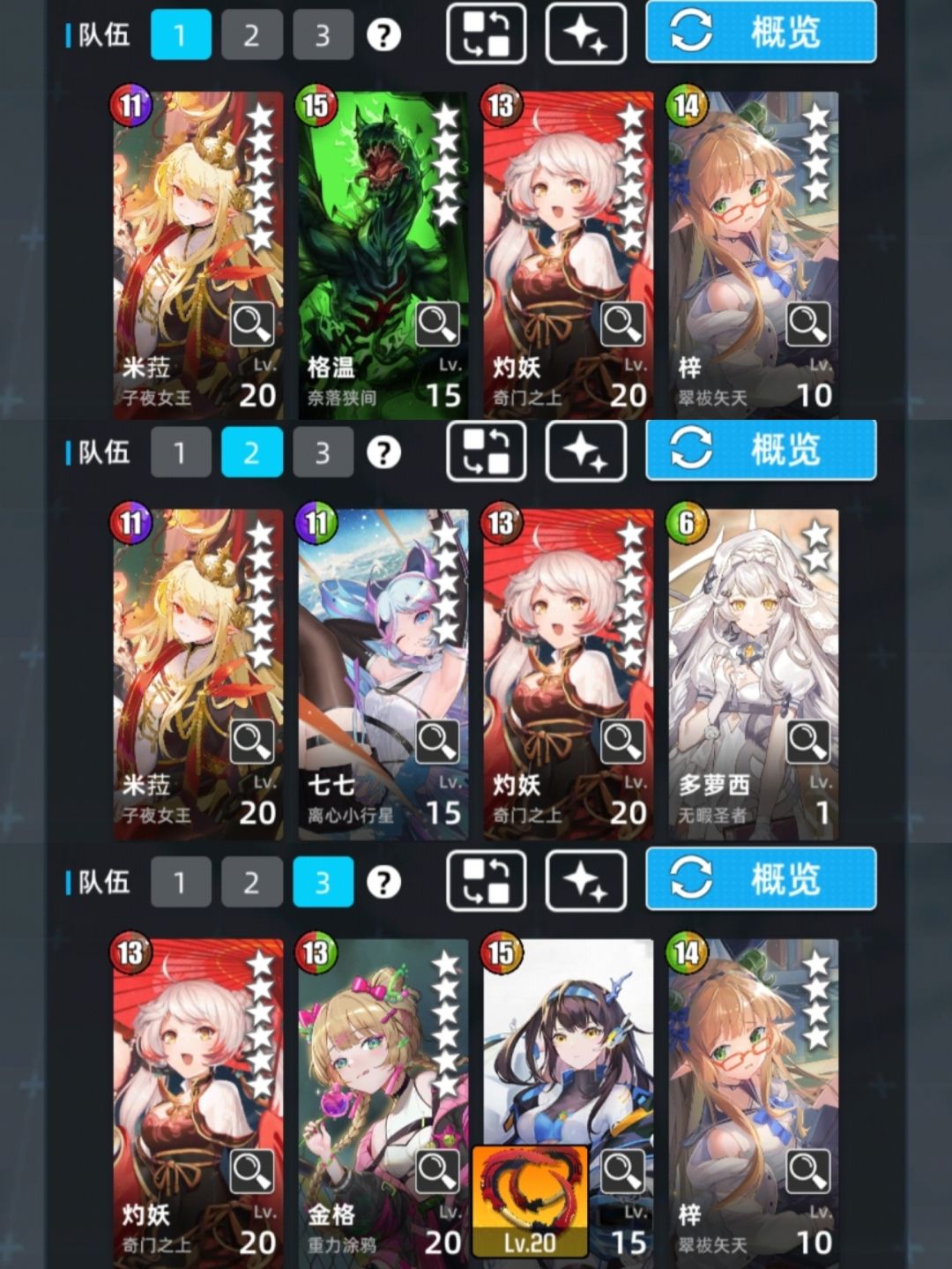 机制很多。3个沉默,就差离玖和火雷娅。