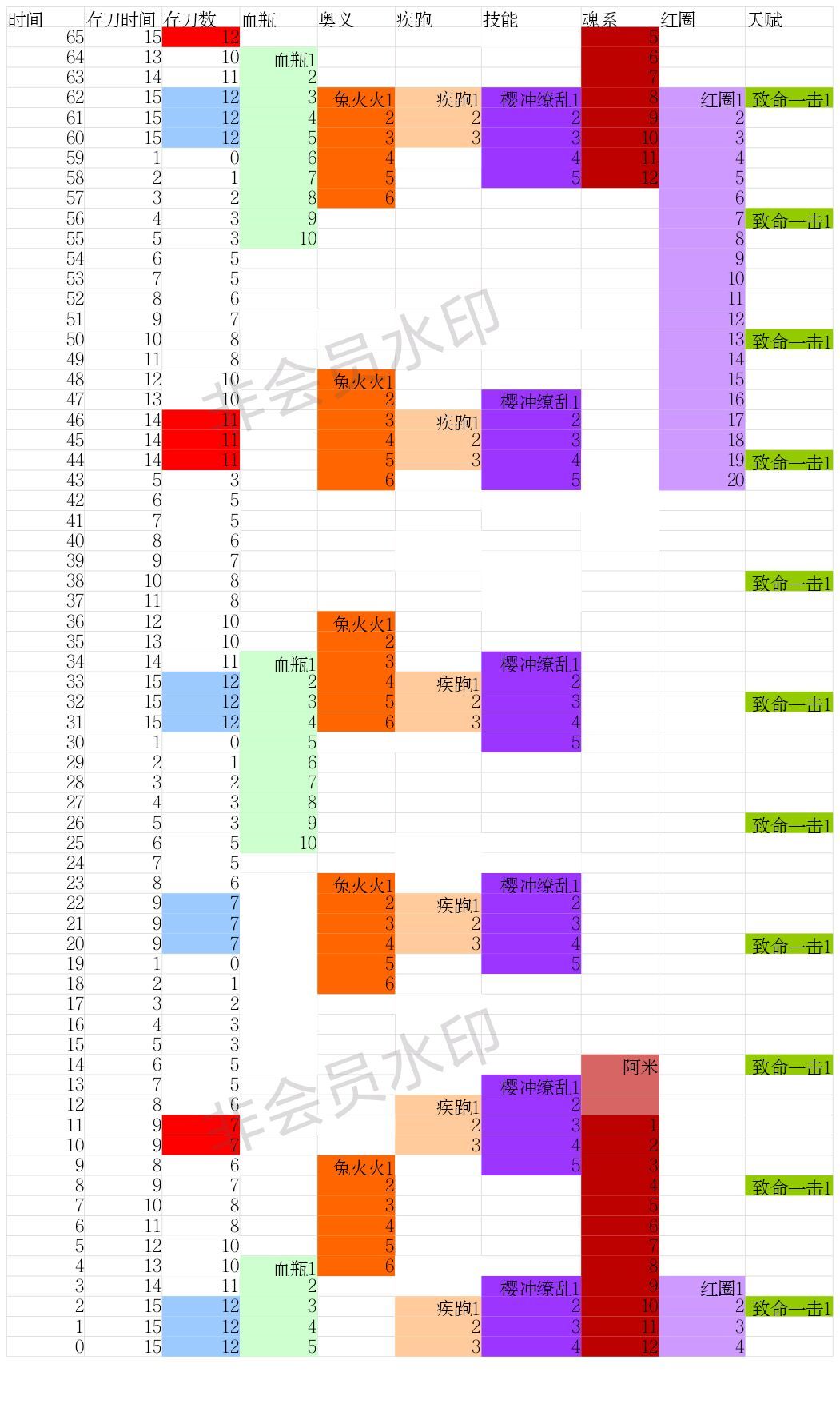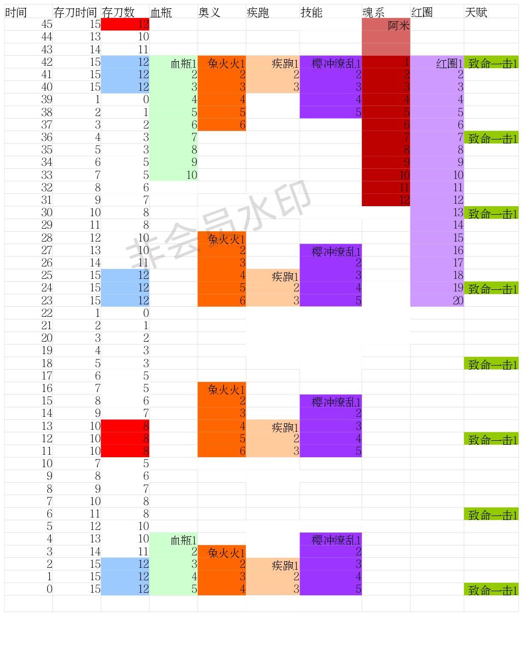 有严格的轴时间点限制,第2次“樱冲”开始,“樱冲”都可以延后1s。该打法需要严格卡准时间点,难度较大