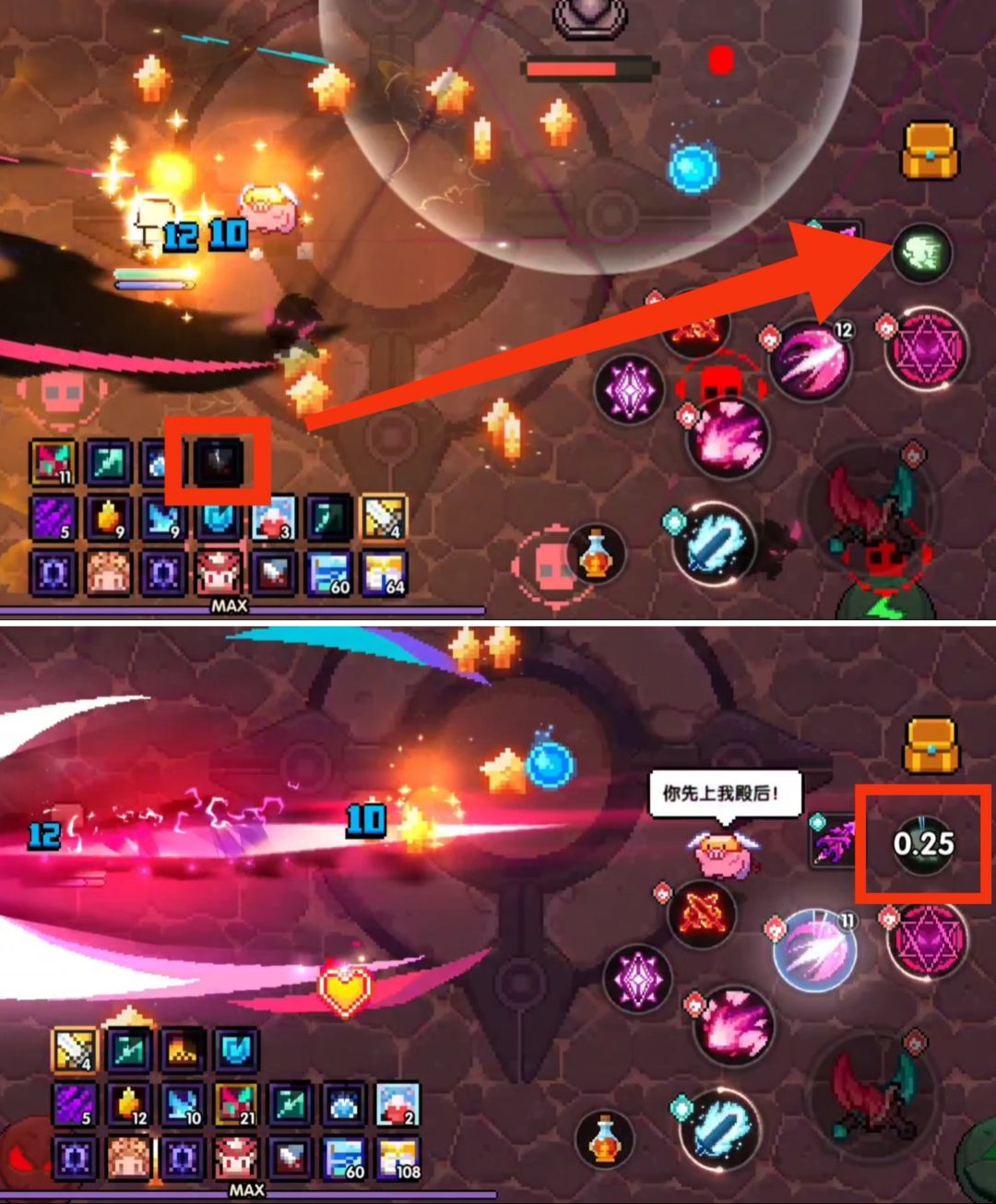 若是“标准版轴”,则疾跑刚好变成1s时(1.99s也是显示1s)结束第二轮小怪(熟练了,直接默数8s即可)