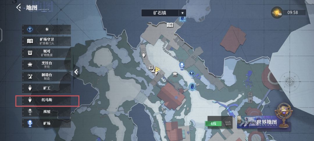 ①:打开地图,来到矿石镇找到托马斯接取历程日志。