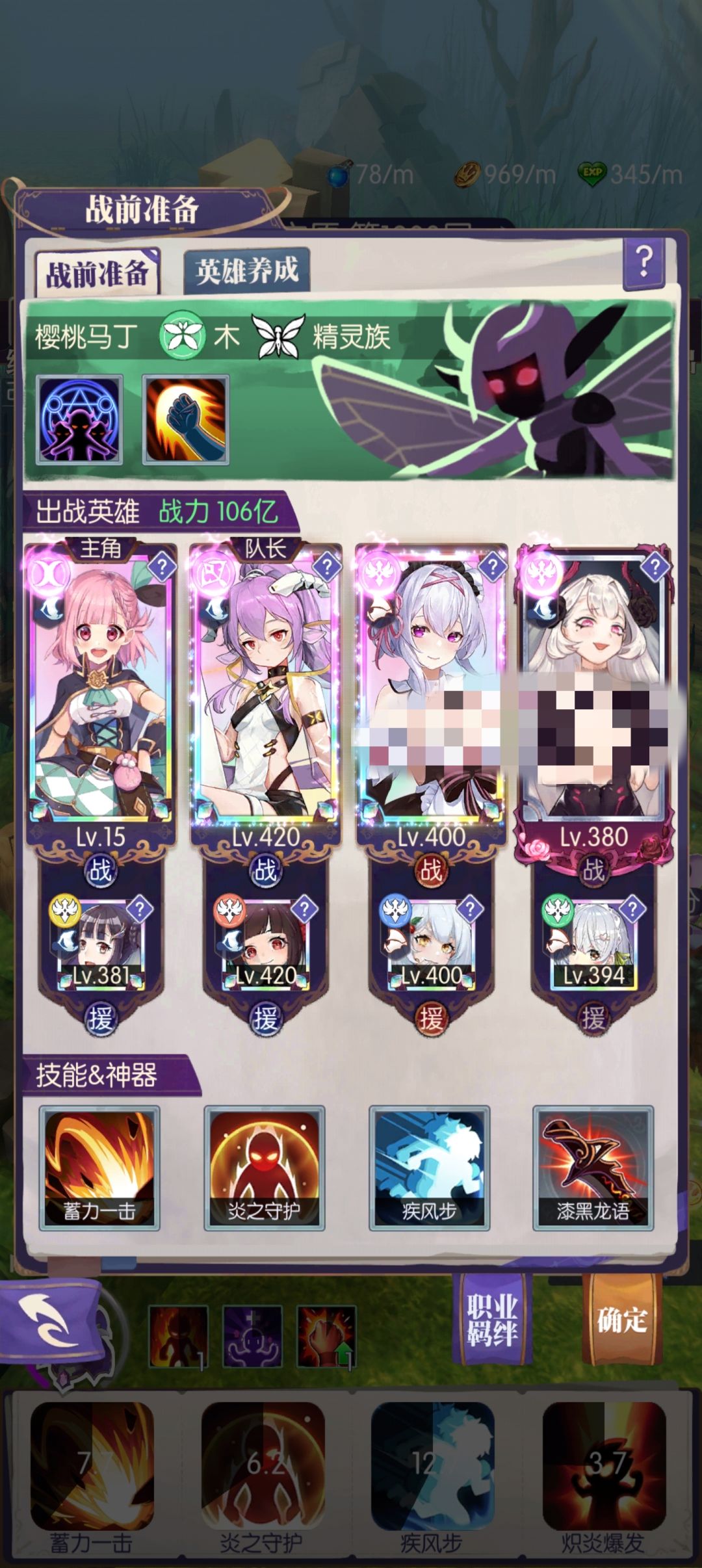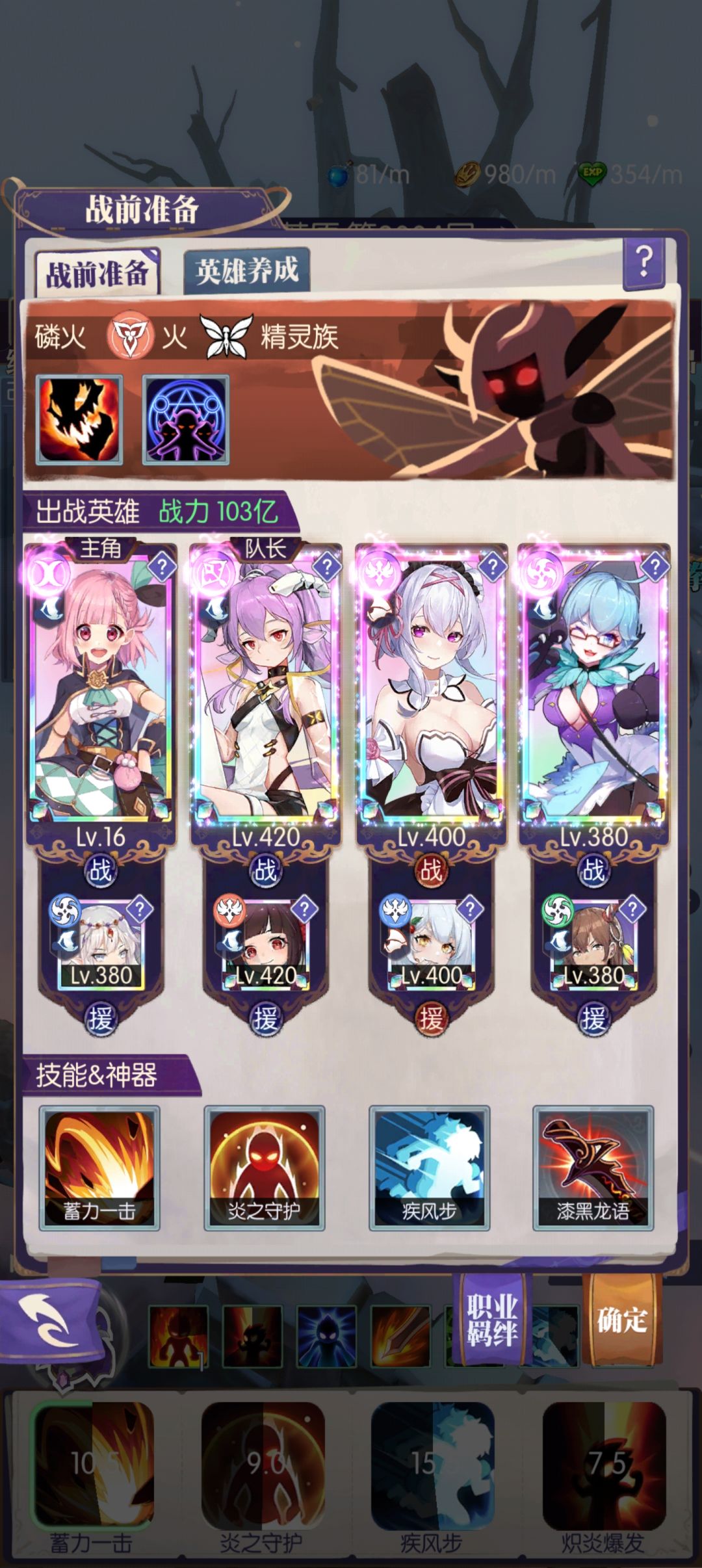 更新:打法虽然能全自动,但是能不能打过,主要看有没有暗元素印记让艾拉放出技能,由于我伊芙品质低开不了专武,换成莉莉刺贤后,虽然战力下降了,但推图的效率变高了,由于我黄纹不够,所以有时候要赌莉莉和芙蕾雅出印记,后面如果能把莉莉专武点满或者把伊芙专武点满应该就能完全挂自动了,打不过就是打不过了