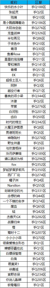 以上即为本次参与测试的玩家名单,请各位受邀参与测试的队长按时进入测试服参与活动,并请您用报名登记时留下的微信或QQ添加官方工作人员,届时会邀请您加入官方玩家群,以便与您及时沟通,具体请以通知为准!