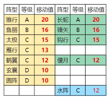 3.1.1 锥行阵自带移动力=20神行