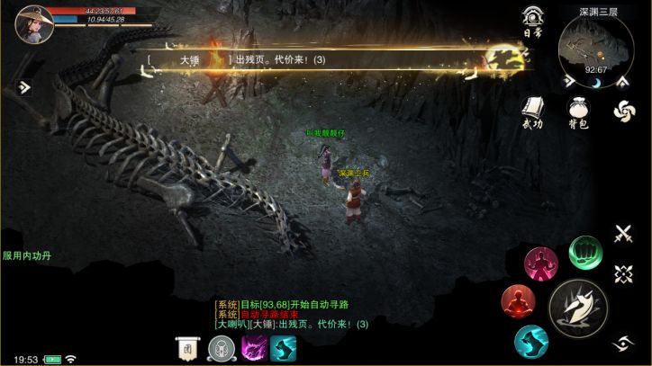 三层NPC深渊卫兵可换取深渊道具(轻功残页,深渊之气,不动冥王印)和不动冥王护体。