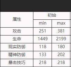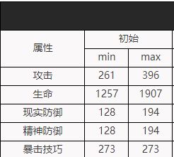 (注:最终的攻击力与生命值数值由于部分是百分比提升,不同等级的提升不一定相同,因此数据有所不同是正常的)