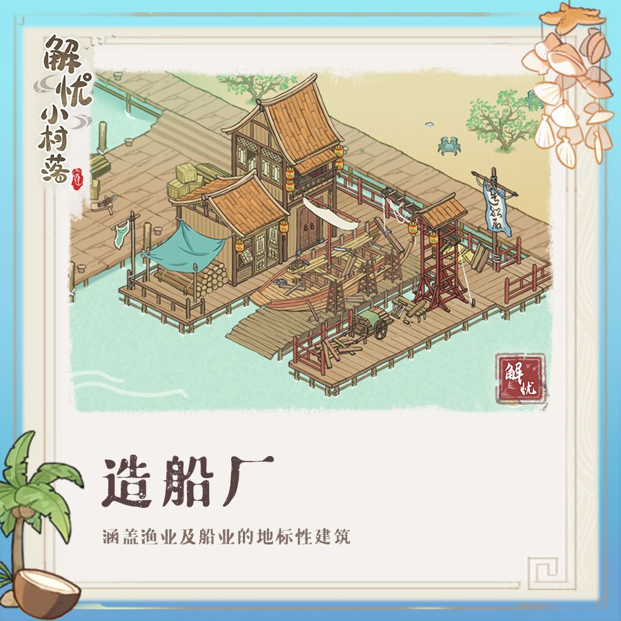 造船厂位于海域的码头旁,大家解锁地图后就能看到啦!这里可以派遣居民、鬼怪进行工作。