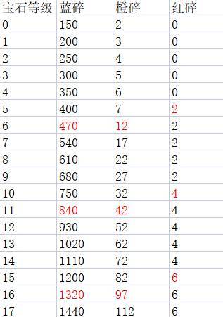 大家好,这里是四时,今天给大家带来自己整理的红宝石升级和分解的材料数量一览,后继我会跟进数据来完善,如果有不对的地方还希望大家指正