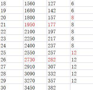 接下来是我个人根据规律预测的数据(21级和26级数据属实)