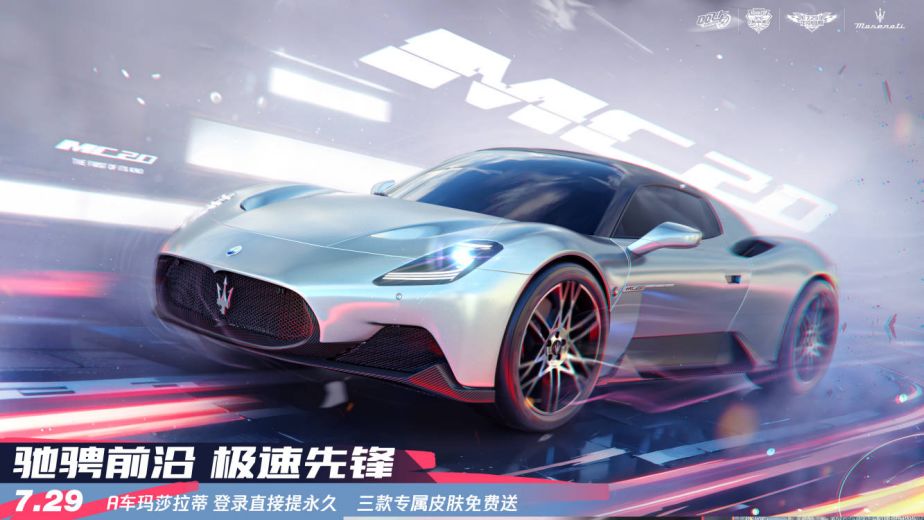 驰骋前沿,极速先锋!7月29日-7月30日年中盛典,车手们登录QQ飞车手游,完成分享任务就能直接获得永久A车玛莎拉蒂MC20!记得一起前来感受世界顶级超跑的魅力哦~