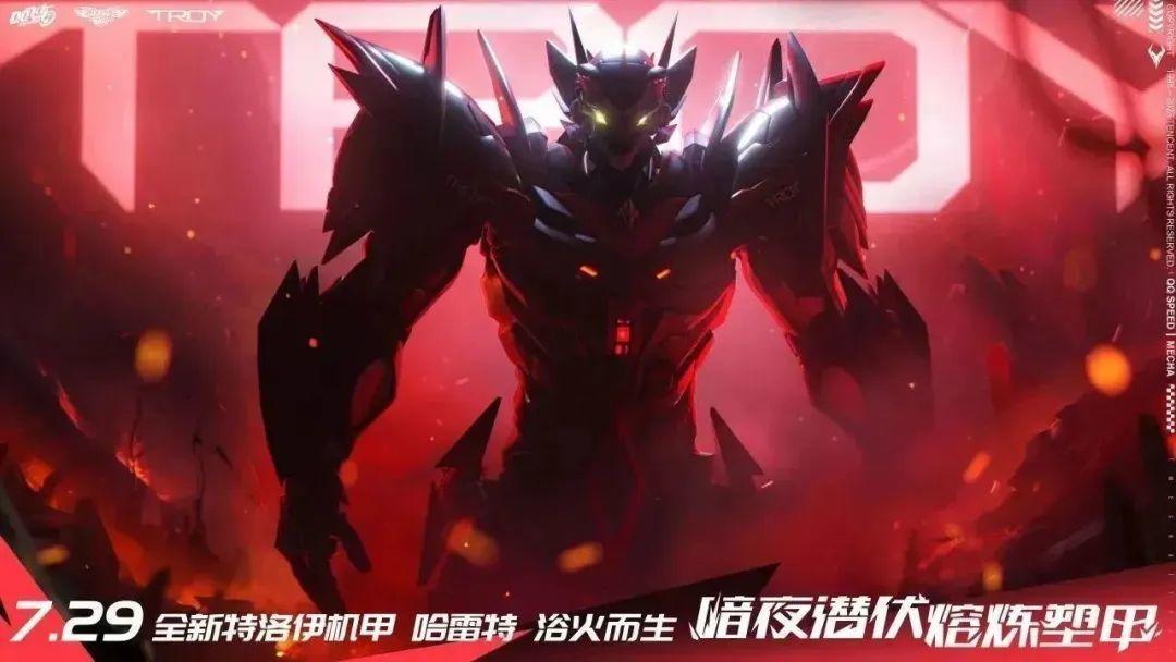 暗夜潜伏,浴火而生!7月29日年中盛典,全新特洛伊机甲哈雷特即将震撼登场!更多关于机甲的爆料将于本周开启,车手们敬请期待~