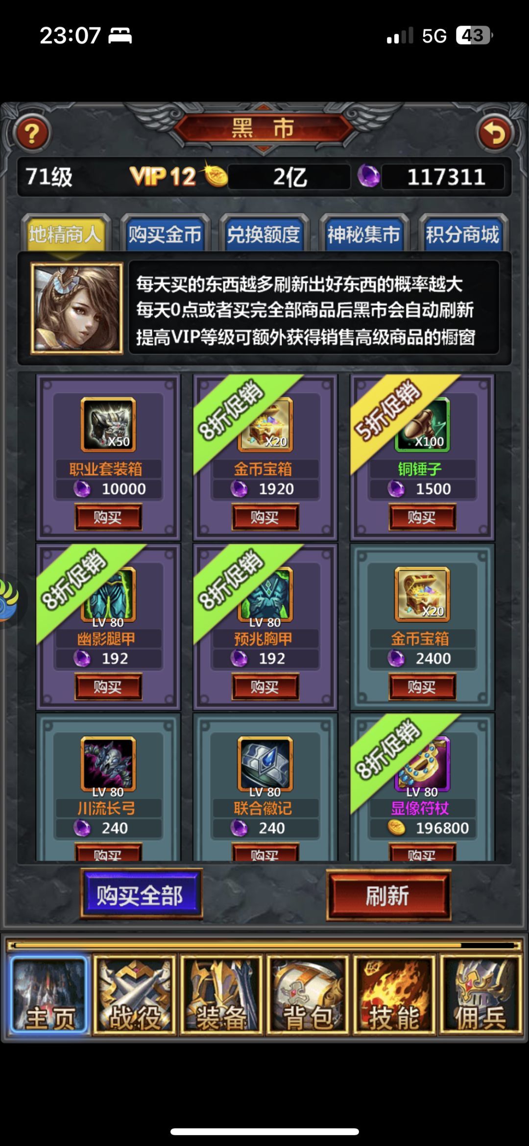 道具的购买:这里建议购买boss卷,熔炼值,灵核结晶,优先这几个,因为荣耀值每天获取很少,不能所有都购买。