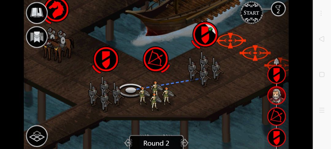 第一回合中路 民兵和弓箭手以编队的形式向前,中路骑兵绕过那些雇佣兵向前,
