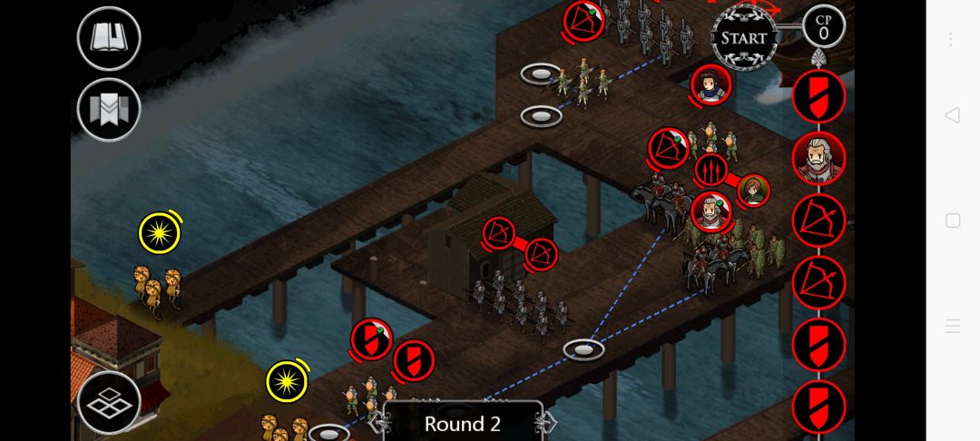 第二回合民兵解除编队前进攻击。加上弓兵和弓骑兵能够直接干掉第一个对面的自爆兵(干掉就不会自爆)然后移动上回合没移动的那一侧