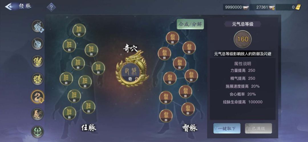 精气,提升基础内功防御,提升御龙部分技能伤害和部分技能负面效果。