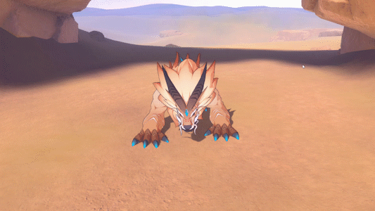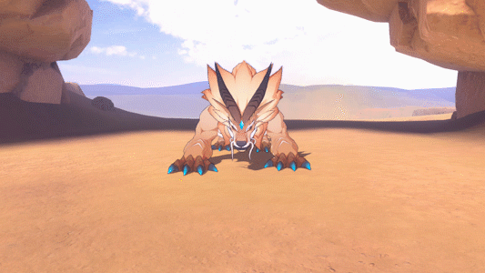陆吾将使用前肢拍击地面带起的沙尘,身体出现电光,尾巴快速摆动出现强烈电光。同时有多道电流轰击地面并向周围发射雷球或落雷,朝天空和落下时陆吾身体将会被闪电包裹,落地时闪电与身体同时砸击地面掀起一大圈雷暴沙石和留下烧焦的地裂。