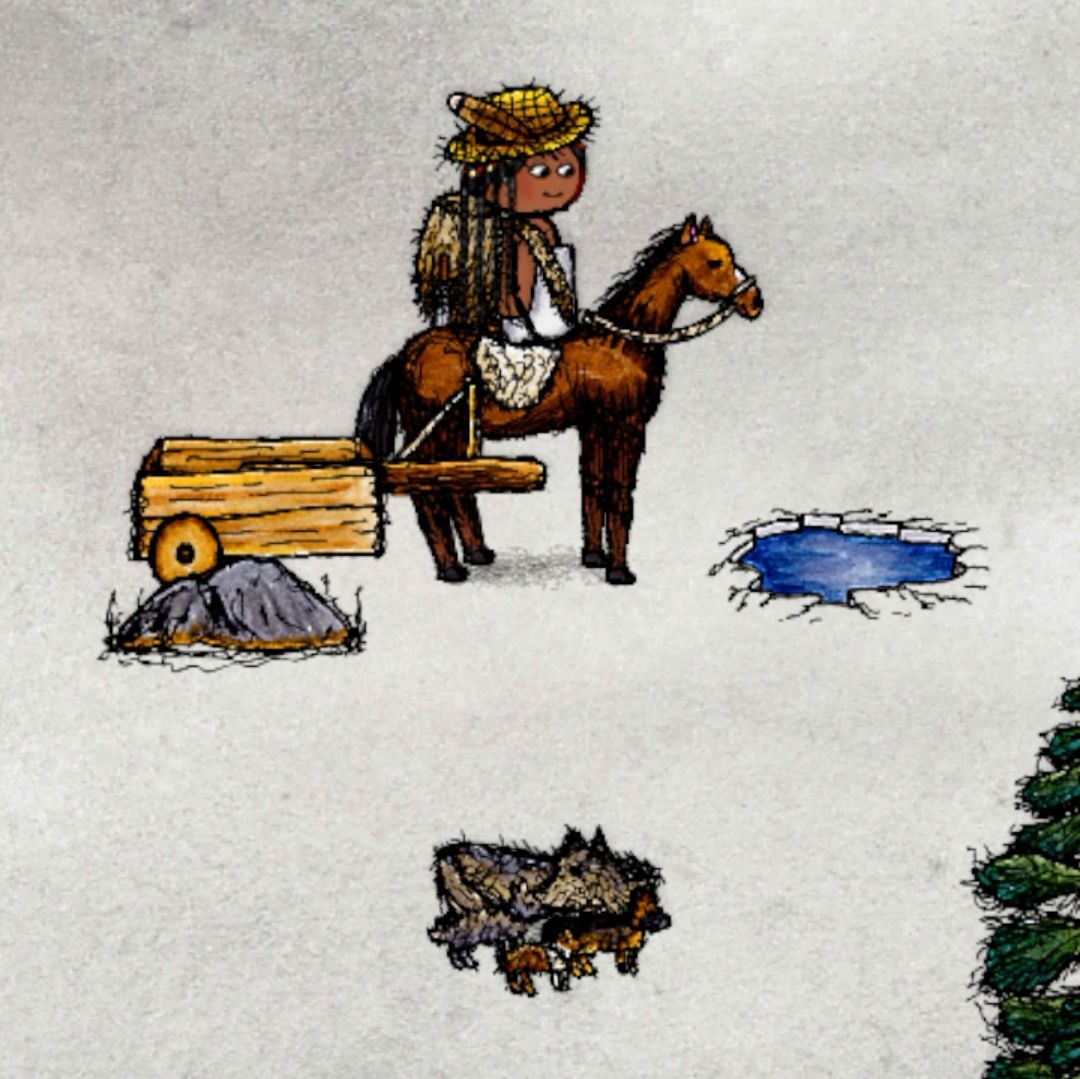 2.背包里装着2块羊肉骑着马去荒地找狼,下马把1块羊肉喂给狼(人物在狼边上的时候拖动到狼所在格子,不建议直接点击防止送菜),然后用最快的速度上马,等待狼妈生崽崽。