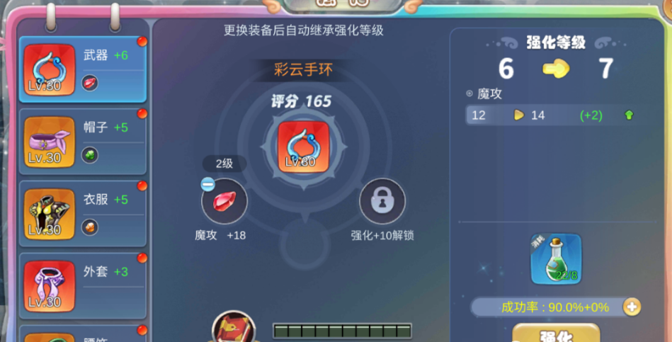 游戏中的装备主要来源为自己锻造,这不仅极大的增加了游戏的趣味性,也让游戏中各类材料可以在交易市场中流通。装备的品质分为绿色、紫色、橙色、红色、传说级、神话级。我们还可以对自己装备进行强化,强化需要消耗祝福油或者强化卷轴。