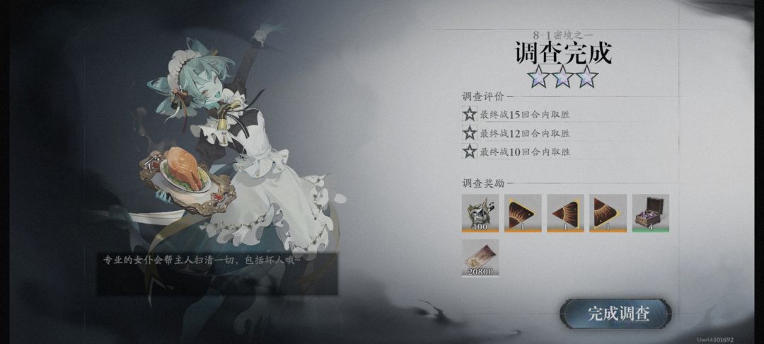 需要注意的是我三个sr都是六命,水母六命才有叠力量的机会,必需;女仆六命可以攒费,不必需;朵儿六命加回血,而且能清虚弱,必需,没有可以换奥吉尔,但会少掉朵儿的虚弱,现在这个阵容基本是永续虚弱
