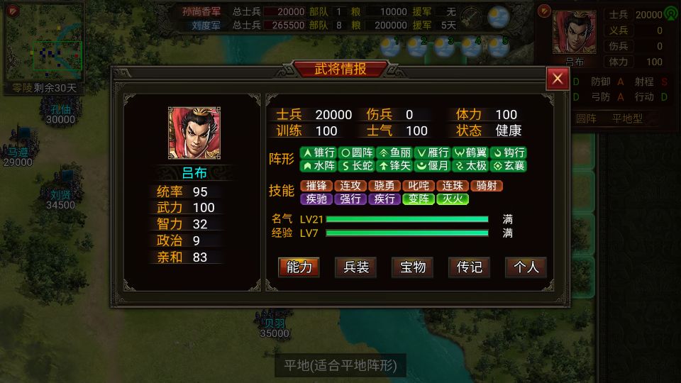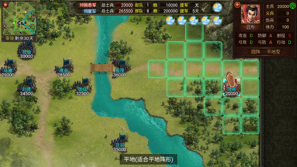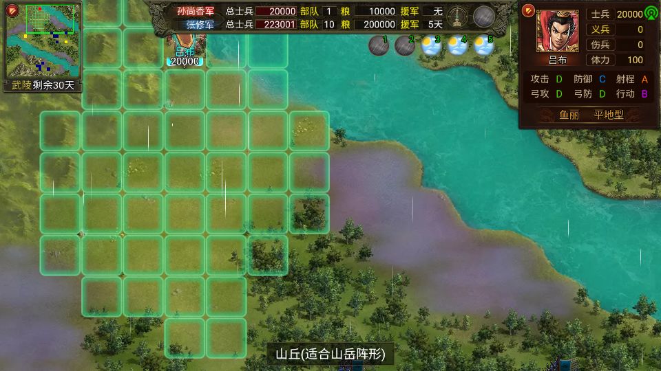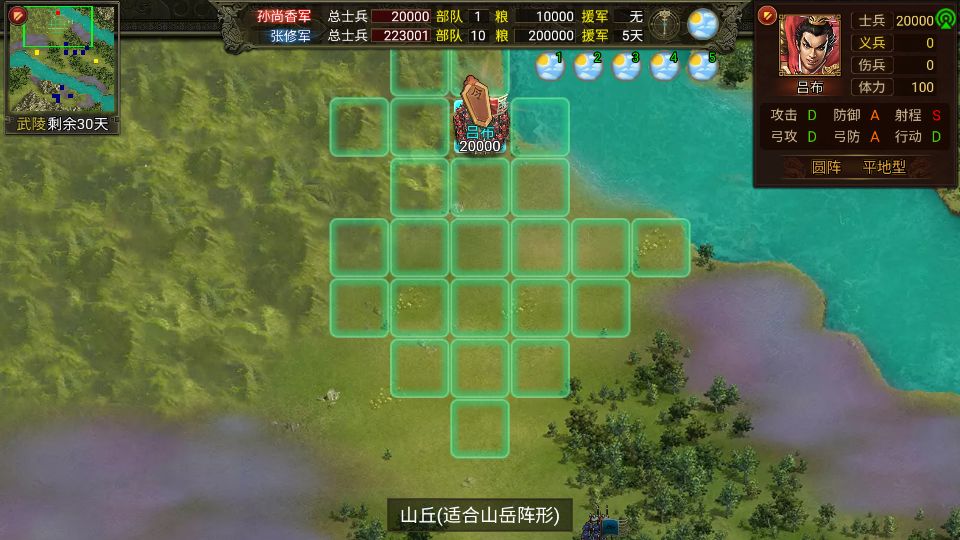 条件5:武陵地形经纬,绿圈的光标位置(12,23)即为吕布位置↓