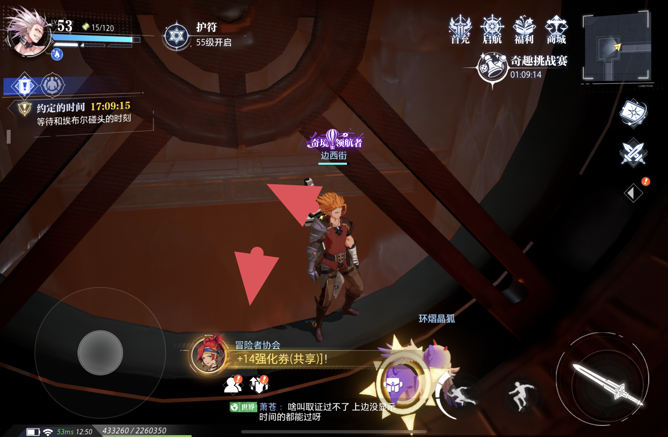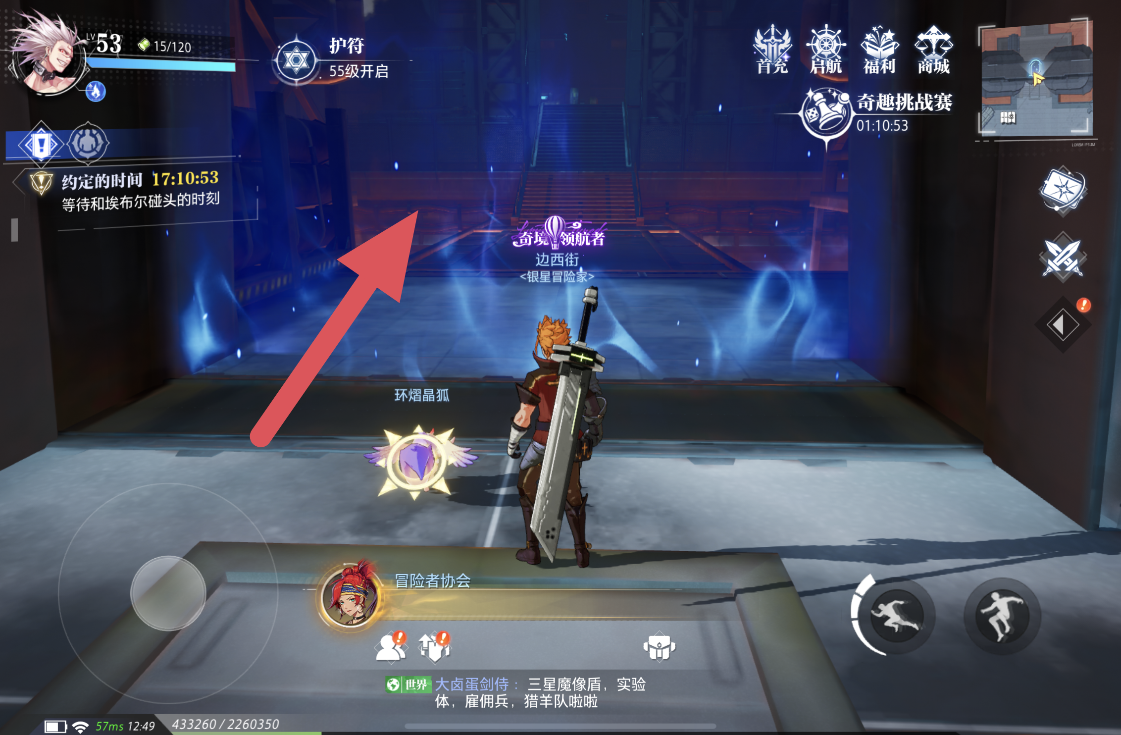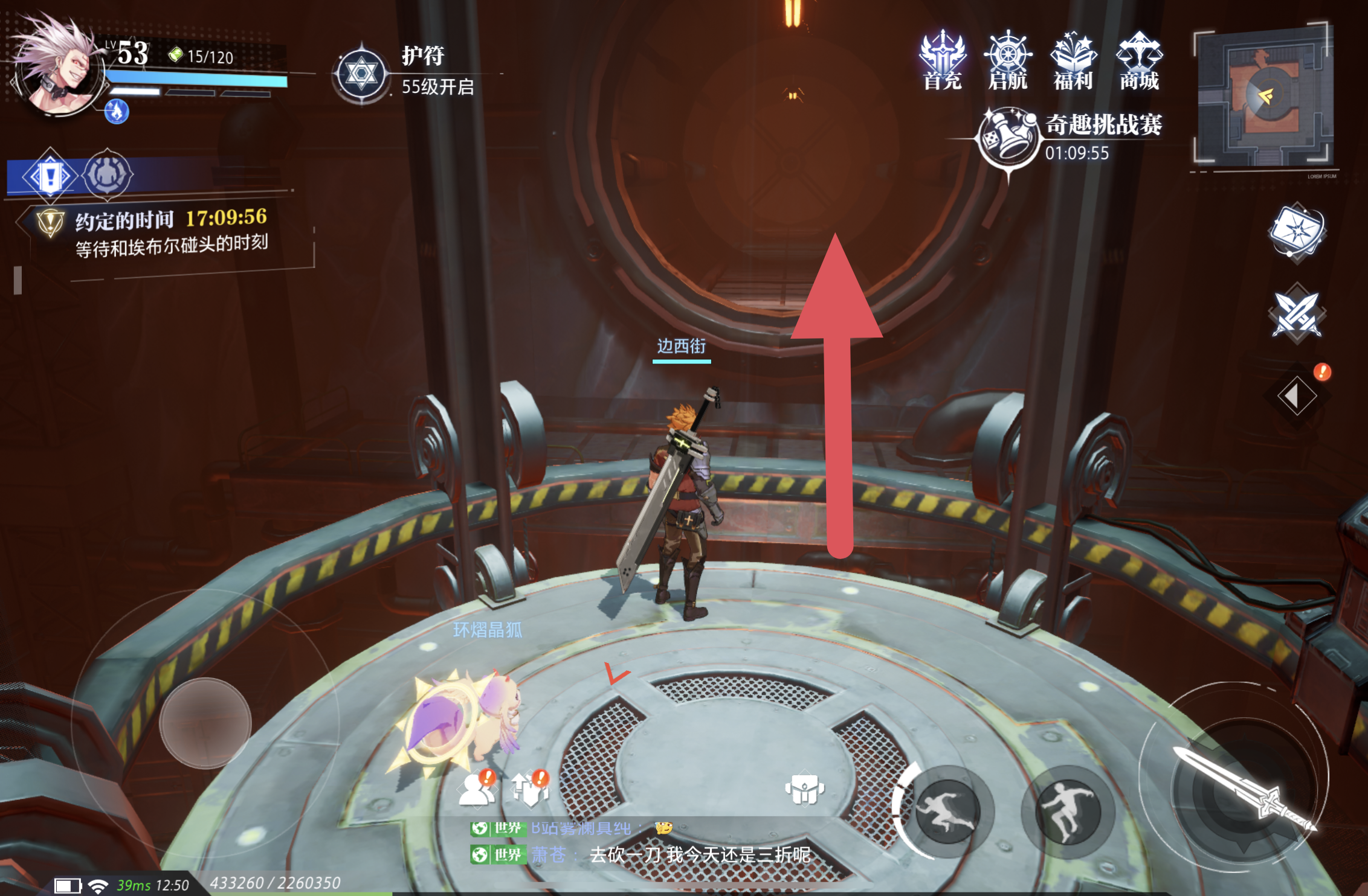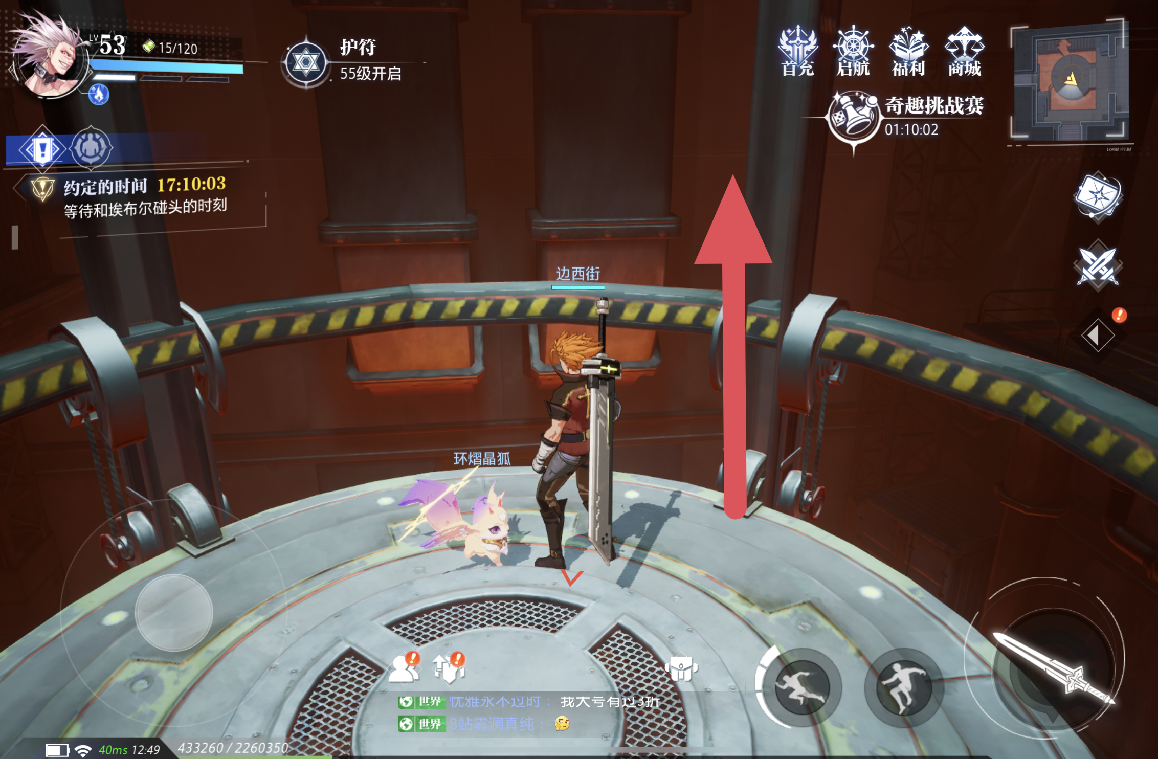 在秘境中一直直线走会遇到一个圆圈升降台,在上面站着不动它会拉着你上去!你会发现上面有个通道,你需要上跳➕前冲来通过!但注意有自爆机器人,但伤害也是不高!