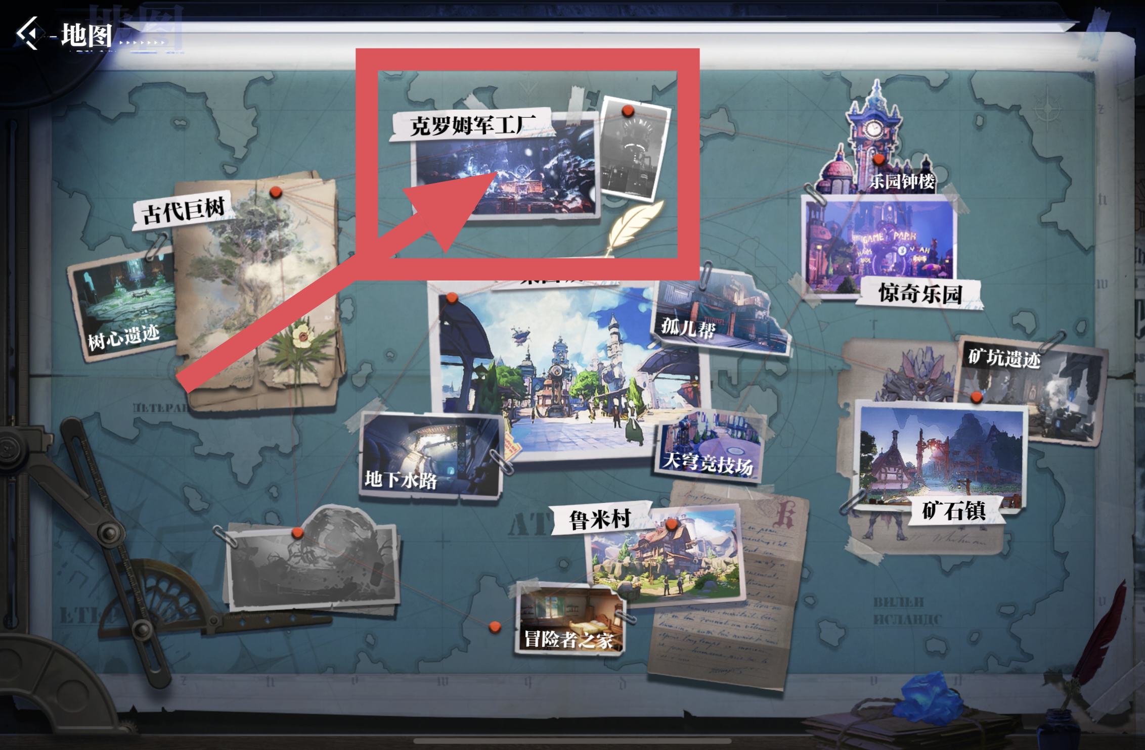 在世界地图中点击克罗姆军工厂,进入地图之后前往秘境!
