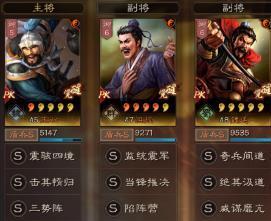 在黑科技阵容方面,这里推荐一套沮授三势盾,主将王双带击其惰归+三势阵,副将魏延带威谋靡亢+绝其汲道,沮授则带当锋摧决+陷阵营。该阵容最大的特征在于其玄妙的连环驾御效果,集计穷、伪报、虚弱、禁疗四大负面状态于一体,能牢牢锁住敌军,使敌军心有余而力不足。输出上,王双+魏延的组合量上是绝对充裕的,只要控制好战场环境,输出就不成问题。带上陷阵营,还可以增强队伍整体的厚度,以及王双和魏延的武力,陷阵营的急救效果也能恢复队伍不少的血量,整体上值得一试。