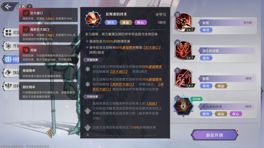 流血队比较依赖【流血】状态,遇到具有净化能力的角色(如尼根护盾队)会受到一定程度的克制,同时,在宝物库副本不具备针对性,比较不利于稳定刷取私藏品,建议可以搭配其他流派共同培养、切换使用。