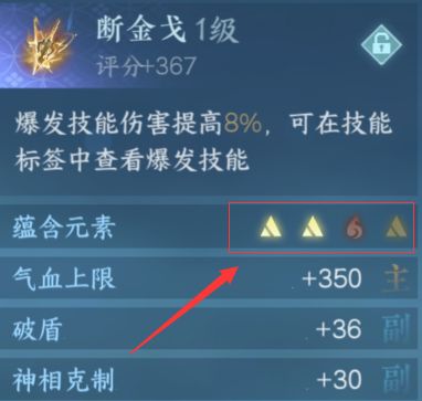 这里的【元素】代表的是内功心法所蕴含的属性元素,大家先选一种元素的内功心法,装配好之后,再来选双属性元素内功心法,品质选择金。