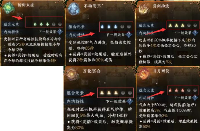 内功元素周天搭配介绍: