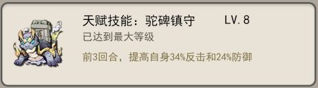 思路二就是用【驼碑镇守】,【金乌真身】和【坚木盾】,用【驼碑镇守】需要考虑自身的反击属性与对方的忽视反击属性之间的差值,有20%的概率就可以用它,只要在战斗中触发一次反击,同层级玩家间也会有很大的优势