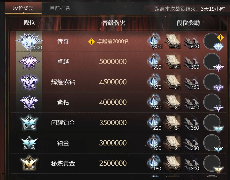 荒典是在通关主线剧情8-7后才能解锁的玩法,在每周五轮换新的BOSS。BOSS的血量为无限,以我们对其造成的伤害总量作为衡量标准发放奖励,同时给予对应的段位,前面的段位是固定获取的,而最终的传奇段位则需要进入全服成绩前2000才可以获得;
