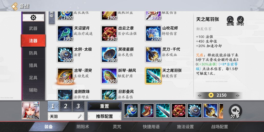 然后我就把神意换天之尾羽,神意CD很长,前期收益不大,天之尾羽的好处是CD短,伤害也够,只是操作和思路上需要做出改变。