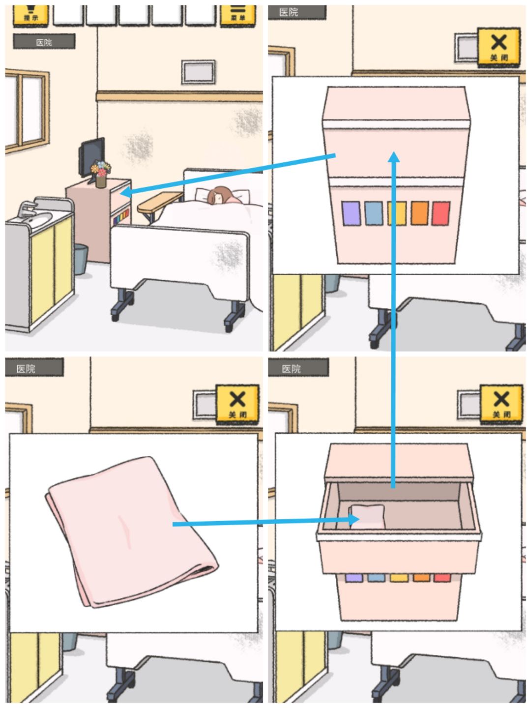 1.(病房)点击打开电脑柜抽屉,获得【毛巾】