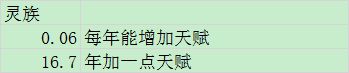 灵族平均16.7年加一星天赋. (10点天赋加一星, 一个蓝色药瓶加2点, 2年30%概率出现1个.)