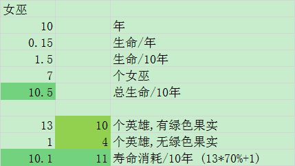 7个女巫可以达到寿命动态平衡略有盈余. 计算过程如下表: (挂冰霜的多, 就需要适当增加女巫了.)