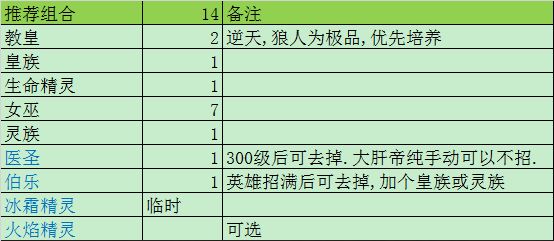 教皇玩法的核心组合推荐如下表. 欧洲人或大肝帝实际组合数量可以高于下表, 效果更好.