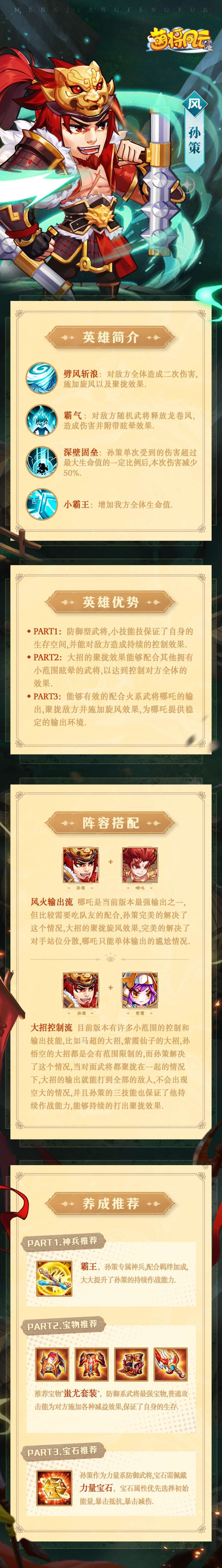 力与柔兼备,棍法犹如旋风的风系17资质武将“孙策”即将在7月24日加盟《萌将风云》,他的到来将会为给战场带来什么样的变化呢?让我们拭目以待!