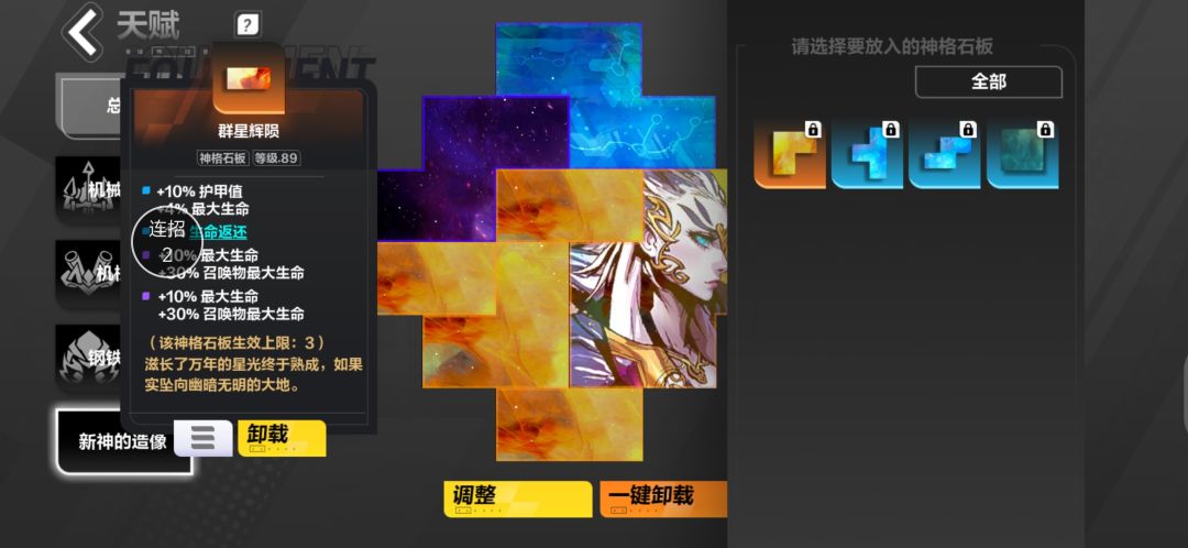 2.石板选择,同理10%生命,30%召唤物最大生命是最好的词条,所有加最大生命的词条都有用,