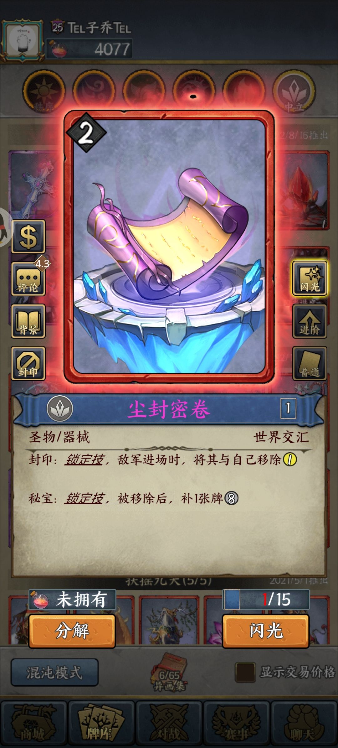 1,尘封密卷【红—补牌】:侦查—补牌—加减点祝福
