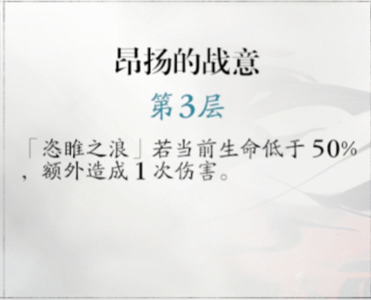 「恣睢之浪」若当前生命低于50%,额外造成1次伤害。
