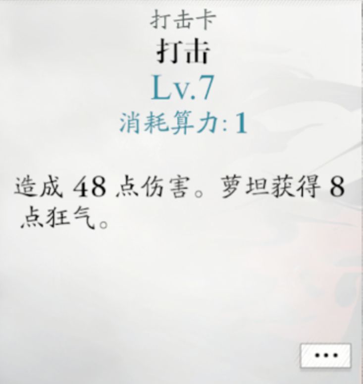 {算力消耗1} 造成0.32Atk点伤害。萝坦获得8点狂气。