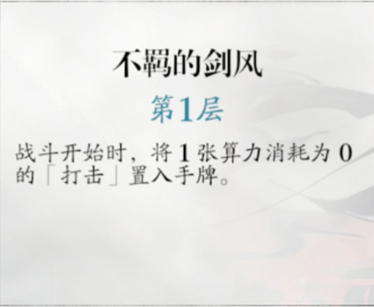 「桀骜之刃」本回合每打出一张「打击」卡,伤害提高50%。