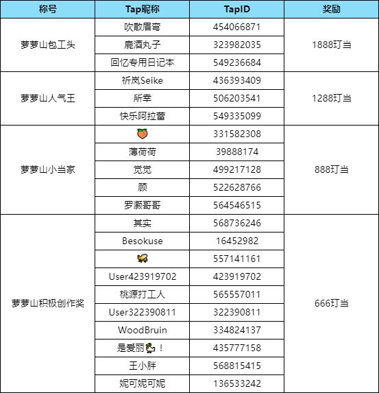 4.随机选出10位参与活动的山民获得【萝萝山积极创作奖】,每位赠送666玎当。