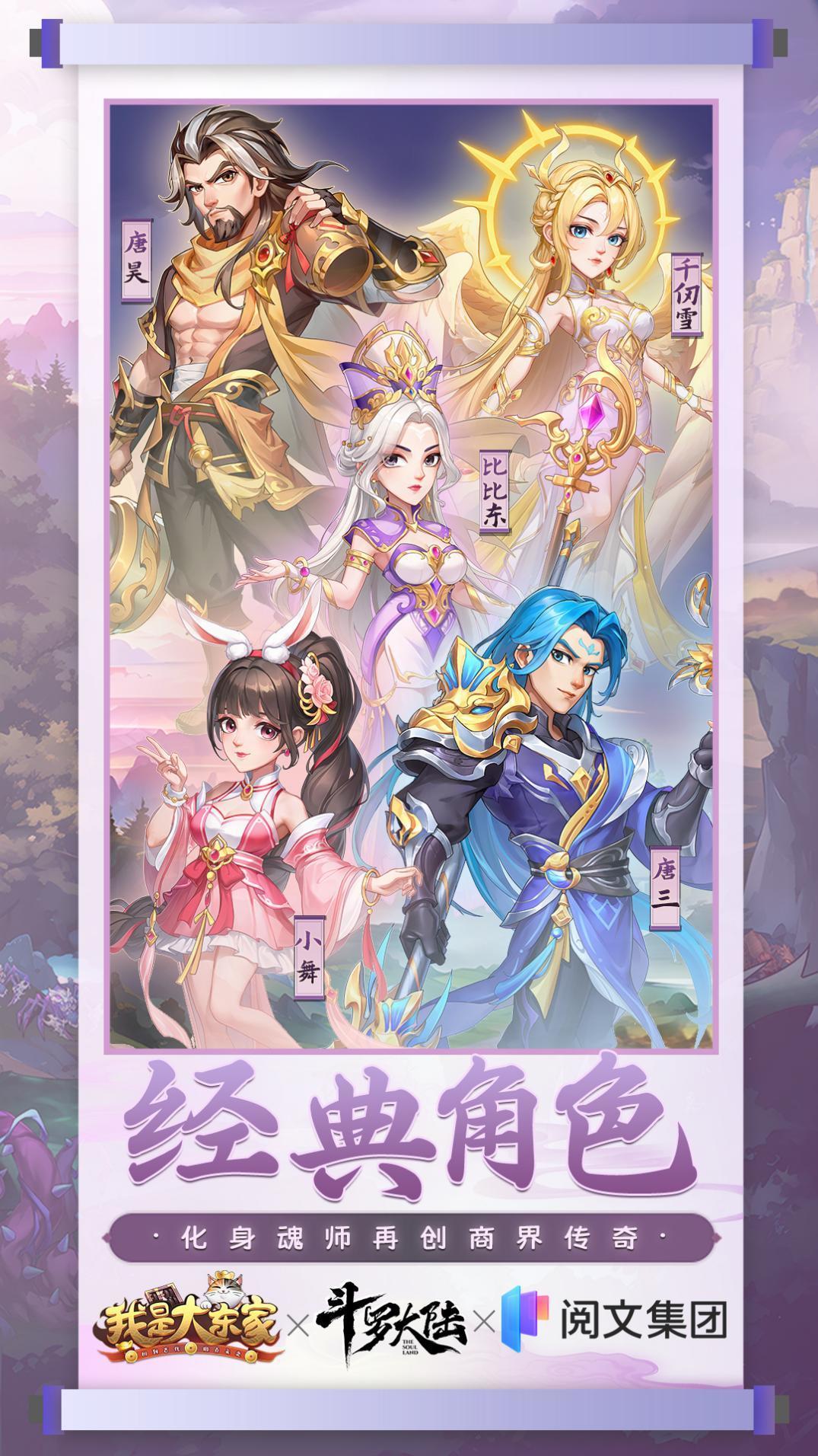 本次联动活动开启后,《斗罗大陆》的一系列经典角色—唐三、小舞、唐昊、比比东、千仞雪的游戏造型及其觉醒皮肤都将在游戏内限时上架,选择你最喜欢的魂师,一起在《我是大东家》开启热血武魂冒险之旅吧!
