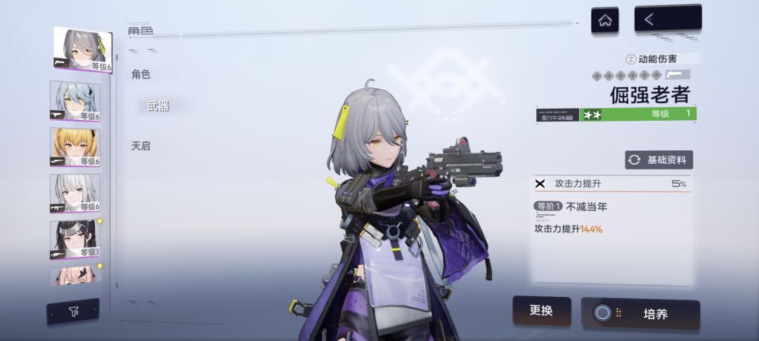 角色升级:点击页面角色,选择自己喜欢的角色点击头像切换,点击右下角的培养,选择右下角一键选取,点击升级即可