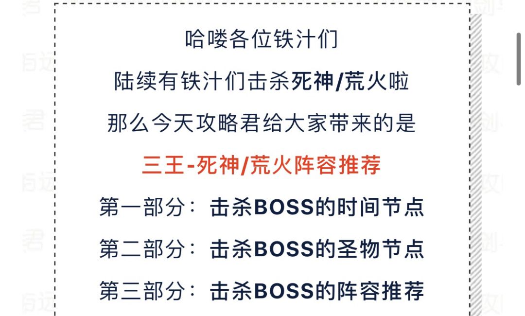 【攻略君】死神/荒火进攻节点及阵容参考